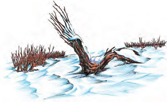 不过,松软的雪被才是树木最好的防寒设备。众所周知,体贴入微的园丁们有意把畏寒的小果树弯到地上,用雪把它们埋起来:这样,小果树就暖和多了。在白雪皑皑的冬天,大雪像床鸭绒被,把森林覆盖起来;那时,不管天多么冷,树木也不害怕了。