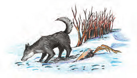 它们一步步仔细地踩着母狼的脚印走,你绝对不会想到这是五只狼的脚印。一定得认真训练自己的眼睛,才能成为一个善于根据雪径追踪兽迹的好猎人(猎人们把雪地上的兽迹称作雪径)。