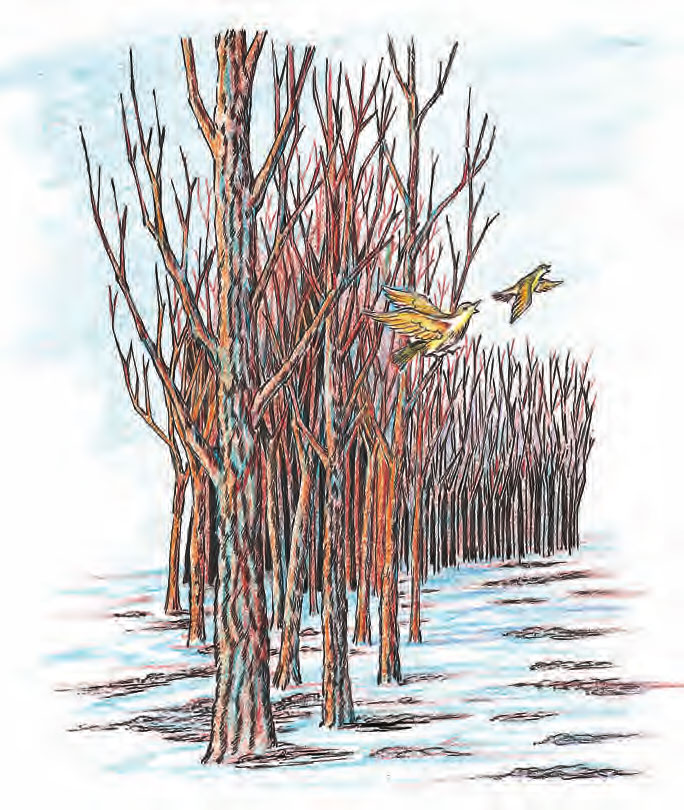 在这本冬天的书上,每一位林中居民都签了字,留下了各自的笔迹和符号。人们学习用肉眼来分辨这些符号。不用眼睛读,还能用什么读呢?