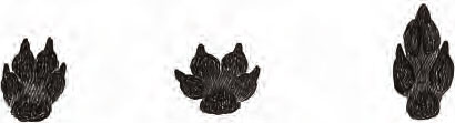 狼的脚印很像大狗的脚印。区别也仅仅在于:狼的脚掌两侧往里缩,所以狼的脚印比狗的脚印更长、更匀称;狼脚爪和狼脚掌在雪上印得更深。狼的前爪印和后爪印之间的距离,比狗爪之间的距离更大。狼的前爪印,在雪地上通常汇合成一个印子。狗脚指头上的小肉疙瘩并拢在一起,狼的却不是这样(请把图中的狗脚印和狐狸脚印、狼脚印相比较)。