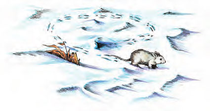 老鼠的字虽然小,可是简单易认。它从雪底下爬出来的时候,经常先绕个圈子,然后再朝着目的地一直跑去,或者退回到鼠洞里。这样一来,就在雪地上留下一长串冒号:冒号与冒号之间的距离一样长。