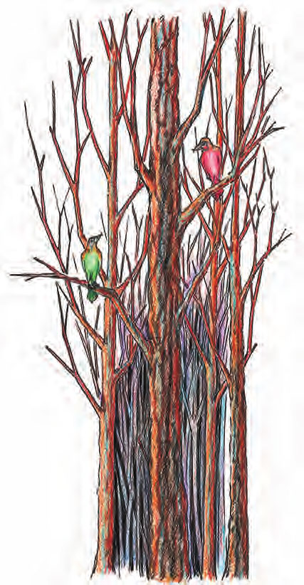 一只小巧玲珑的小鸟,好像从地下钻出来似的,突然跳了出来。它长着锥子般的尖嘴巴,尾巴向上撅着。小鸟展翅飞到枞树顶,啼啭声响彻整个树林!