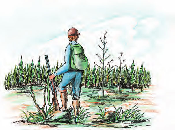 猎人谨慎地移动着脚步,悄悄靠近。手里拿着枪,扳起扳机,双眼紧盯着高大的、黑黝黝的枞树。