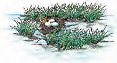 戴领带的勾嘴鹬和夜游神夜莺的家最简陋。勾嘴鹬直接把四个蛋产在小河边的沙滩上。