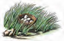 百灵、林鹨、鹀和许多别的鸟把住房搭在草丛里。我们记者最喜欢篱莺的窠棚。它用干草和干苔搭成,带有棚顶,门开在侧面。