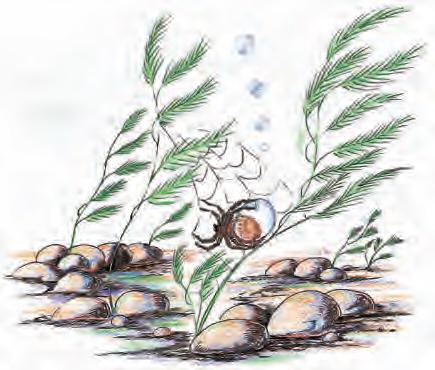 银色水蜘蛛的房子最不同寻常。它先在水底下的水草间铺一张蜘蛛网,然后浮到水面,用毛茸茸的肚皮盛回一些气泡,放到蜘蛛网下。水蜘蛛就住在这种空气流通的水下小房子里。