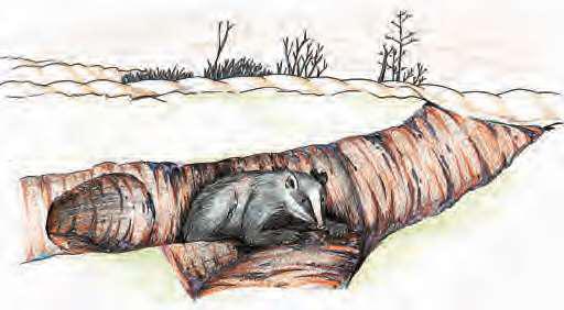獾挖了一个杰出的洞穴。出入口东一个西一个,里面分布着许多小地道,这都是为了防备敌人出其不意进攻时用的。