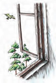 早晨五点钟左右,我睡醒了,看见小燕雀的妈妈蹲在窗台上,嘴里衔着一只苍蝇。我跳起来,打开窗户,自己则躲到屋角偷偷观看。
