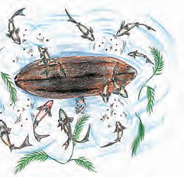 每天早晨,木牌周围的水域一片沸腾:鱼儿们在焦急地等着吃早饭。鱼的纪律性很差,它们你碰我,我撞你,乱作一团。