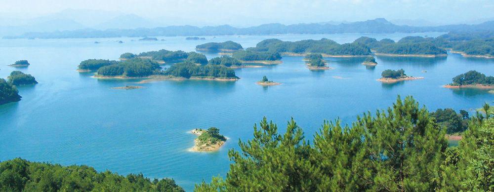 千姿百态的岛屿和迷离曲折的港湾,构成了千岛湖美丽的山水胜景。
