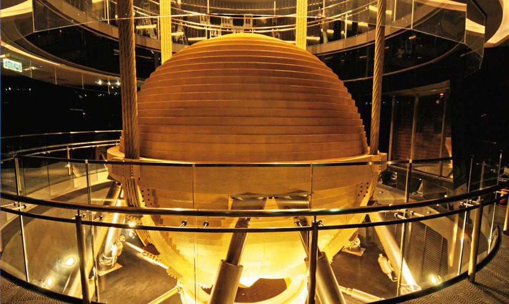 台北101大楼88~92楼层挂置的世界最大的阻尼器。