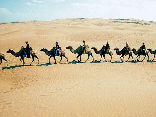 要穿越新疆古尔班通古特沙漠,骆驼是必不可少的。