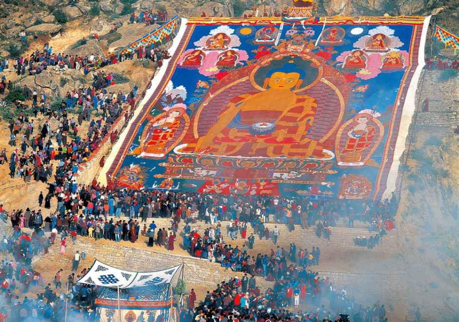 8月哲蚌寺晒唐卡,几百个喇嘛展开半座山大的唐卡,谁第一次见都会感到极度震憾!