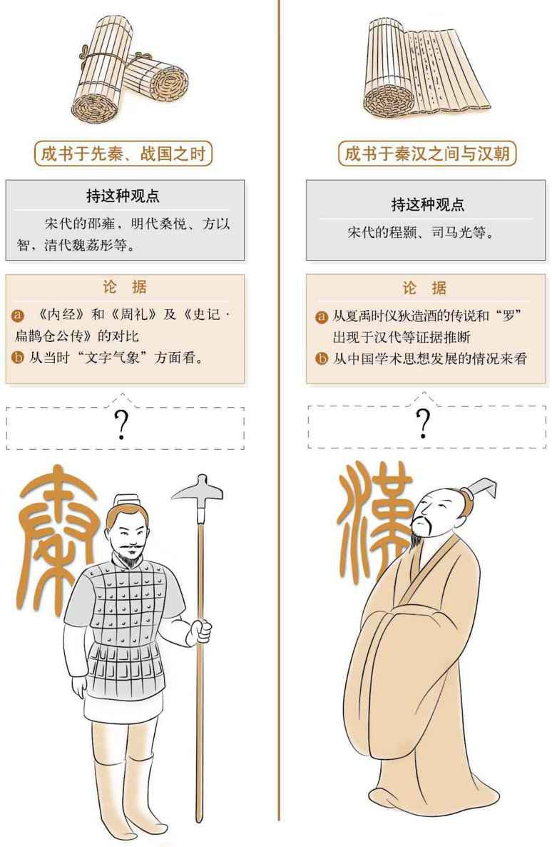 | 3 从《汉书·艺文志》载录的书目中可知,还记载有《黄帝外经》三十七卷,至今没有发现,似乎早已散佚。 | 4 关于它的出现年代,历代也有众多质疑之声,自宋及清,程颐、司马光、朱熹、方孝孺、魏荔彤、崔述等人都对其提出了质疑。 |