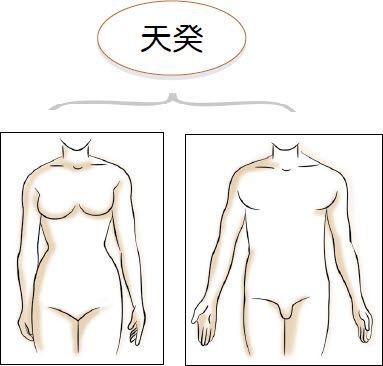 天癸有一个重要的特性,就是对男女而言,其物质构成同中有异。正是由于这种天癸结构的差异,才使青春期以后的男女形体向着不同的方向分化发育。但这种分化又有明确的规律性,即互以满足对方性的需求为目标。