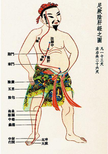 属肝,络胆,与肺、胃、肾、脑有联系。主治泌尿生殖系统疾病、肝胆疾病及头顶痛等其他疾病。