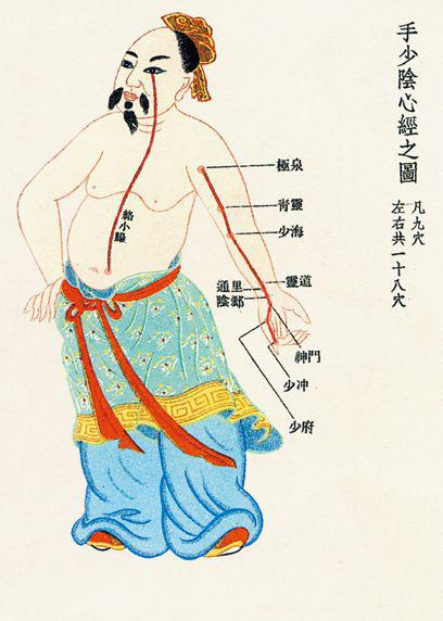 属心,络小肠,与肺、脾、肝、肾有联系。主治心血管疾病、神经精神疾病及经脉所经部位的疾病。