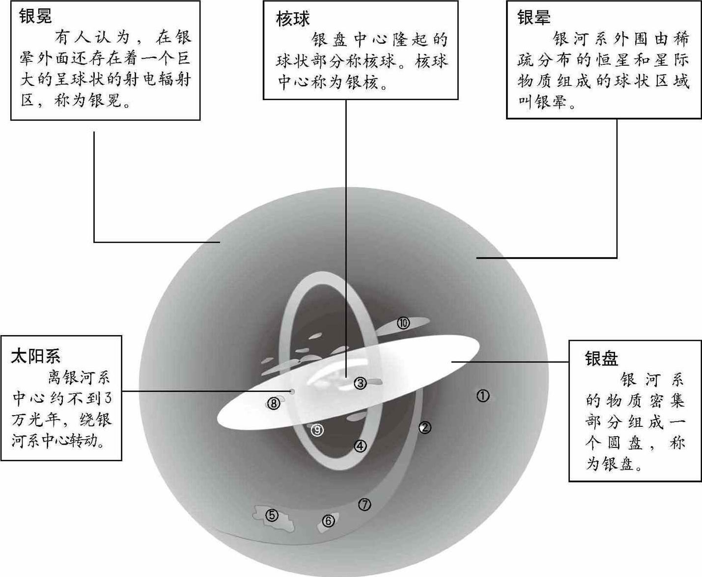 在银晕中,约有150个球状星团,它们绕银心转动,一般都离银道面很远。