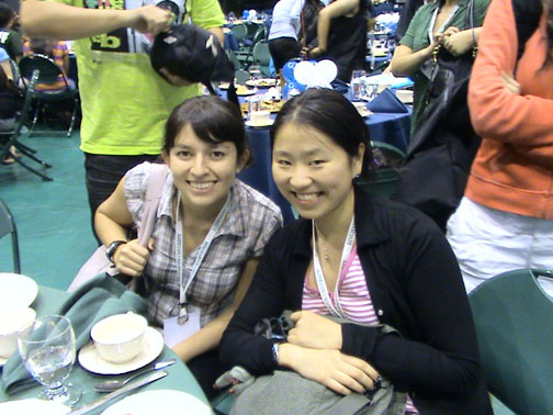 那天晚上有一个宾汉姆顿国际学生晚宴,在一个很大的篮球场里面。我和我新认识的这些朋友们一起吃,还挺愉快的。我特意和ELIANE合影,因为我想以后也许遇见她的机会并不那么多了。很多时候,我们都会很舍不得那些也许没有什么机会再见的朋友和亲人,即使有些才刚刚见面。人生,或许就是这样一个不断抛弃过去不断面对未来然后再不断拾起过去不断放弃未来的过程。没有人知道自己是不是抛弃了自己应该抛弃的,所以就会不断地折回去拾起过往留恋的,直到再一次地发现为了过去而被自己抛弃的未来也是那样弥足珍贵。