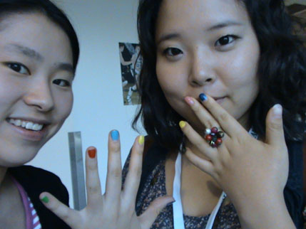 下午3点,我到了WATSON THEARTRE准备参加一个讲座,但他们说要到四点,这时候我碰到了一个长得很漂亮的斯里兰卡女生和一个美国女生,她们是从缅甸转过来的,住在校外。我们谈了一会儿,她们很友善。之后我坐在阳光底下的凳子上等讲座开始的时候又碰到了在注册排队时注意到的一个也背KIPLING包的女生。很不巧的是,她也是研究生,来自哥伦比亚。我喜欢她的打扮。美国和中国大学很不同的一点就是学生的打扮。在美国,就像后来碰到的一个纽约女生所说的,没有人喜欢正常的东西,每个人都试图找到一些只有自己有的东西。因此我实在很庆幸自己有那招人注目的彩虹和蜘蛛网指甲,那双曾经在浙大新生会上使我看起来特别得不可思议而被人称作“傻”的亮枚红色CROCS鞋子。我注意到这里几乎每一个女生都有耳洞——而且大多数都是很奇怪的耳洞,耳蜗上,软骨上,有的一下子就是好几个,还有鼻子上嘴唇上眉毛上脸上各种各样奇怪的环和钉。一个洞都没有的几乎就是不正常。