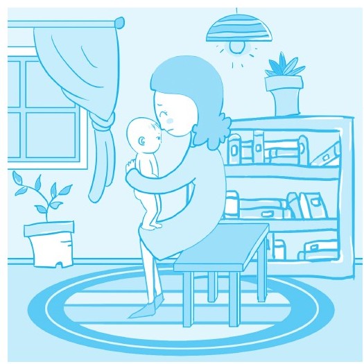 如果觉得直立式比较辛苦,可以考虑端坐式,妈妈可以坐着,让宝宝侧坐在自己在大腿上,妈妈一只手托着宝宝的身体,另一只手轻拍宝宝的上背部。