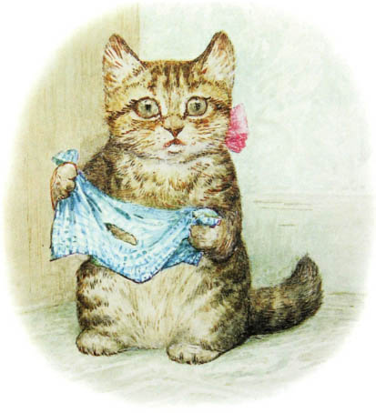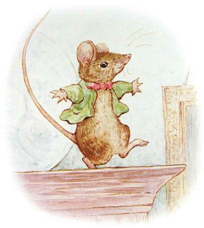 老鼠早就钻出抹布,逃走了。看啊,他在碗柜顶上跳起了快步舞!