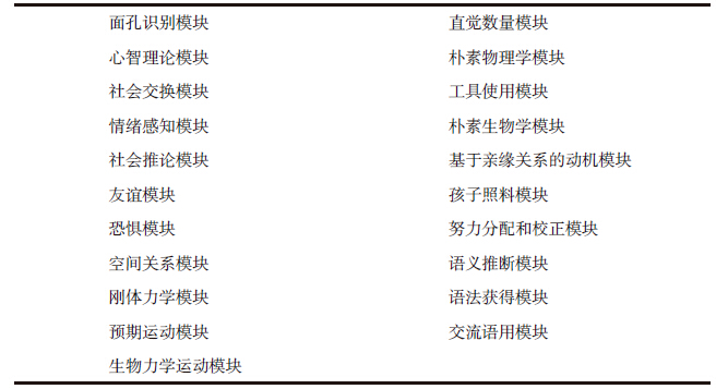 表2-2 过去20年里,心理学文献中讨论过的认知模块