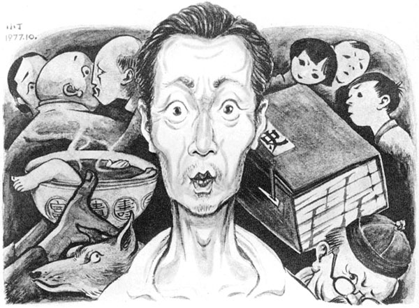 前几天,狼子村的佃户来告荒,对我大哥说,他们村里的一个大恶人,给大家打死了;几个人便挖出他的心肝来,用油煎炒了吃,可以壮壮胆子。我插了一句嘴,佃户和大哥便都看我几眼。今天才晓得他们的眼光,全同外面的那伙人一模一样。