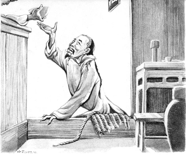有一天,大约是中秋前的两三天,掌柜正在慢慢的结账,取下粉板,忽然说,“孔乙己长久没有来了。还欠十九个钱呢!”我才也觉得他的确长久没有来了。一个喝酒的人说道,“他怎么会来?……他打折了腿了。”掌柜说,“哦!”“他总仍旧是偷。这一回,是自己发昏,竟偷到丁举人家里去了。他家的东西,偷得的么?”“后来怎么样?”“怎么样?先写服辩