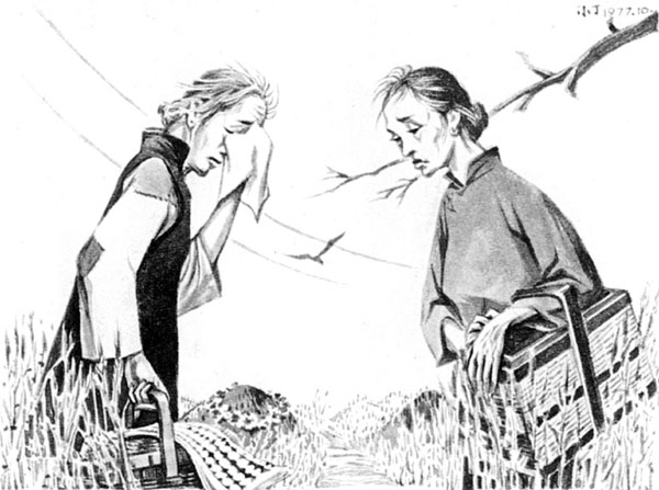 那老女人叹一口气,无精打采的收起饭菜;又迟疑了一刻,终于慢慢地走了。嘴里自言自语的说,“这是怎么一回事呢?……”