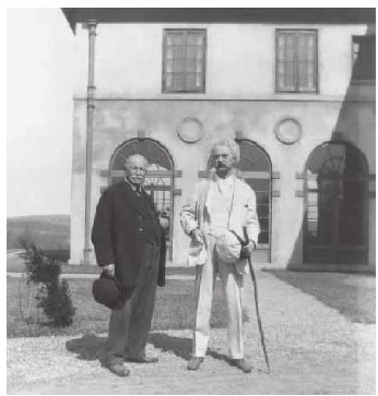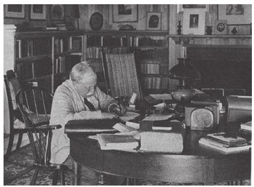 他把我们强行地留了下来,在一个单间里吃了午餐。其间,他一直在不停地说。(我们就吃了些熏肉和蚕豆,尽管如此,“他坐在那儿,很伟岸”——豪厄尔斯引用但丁的话这样评价道。)