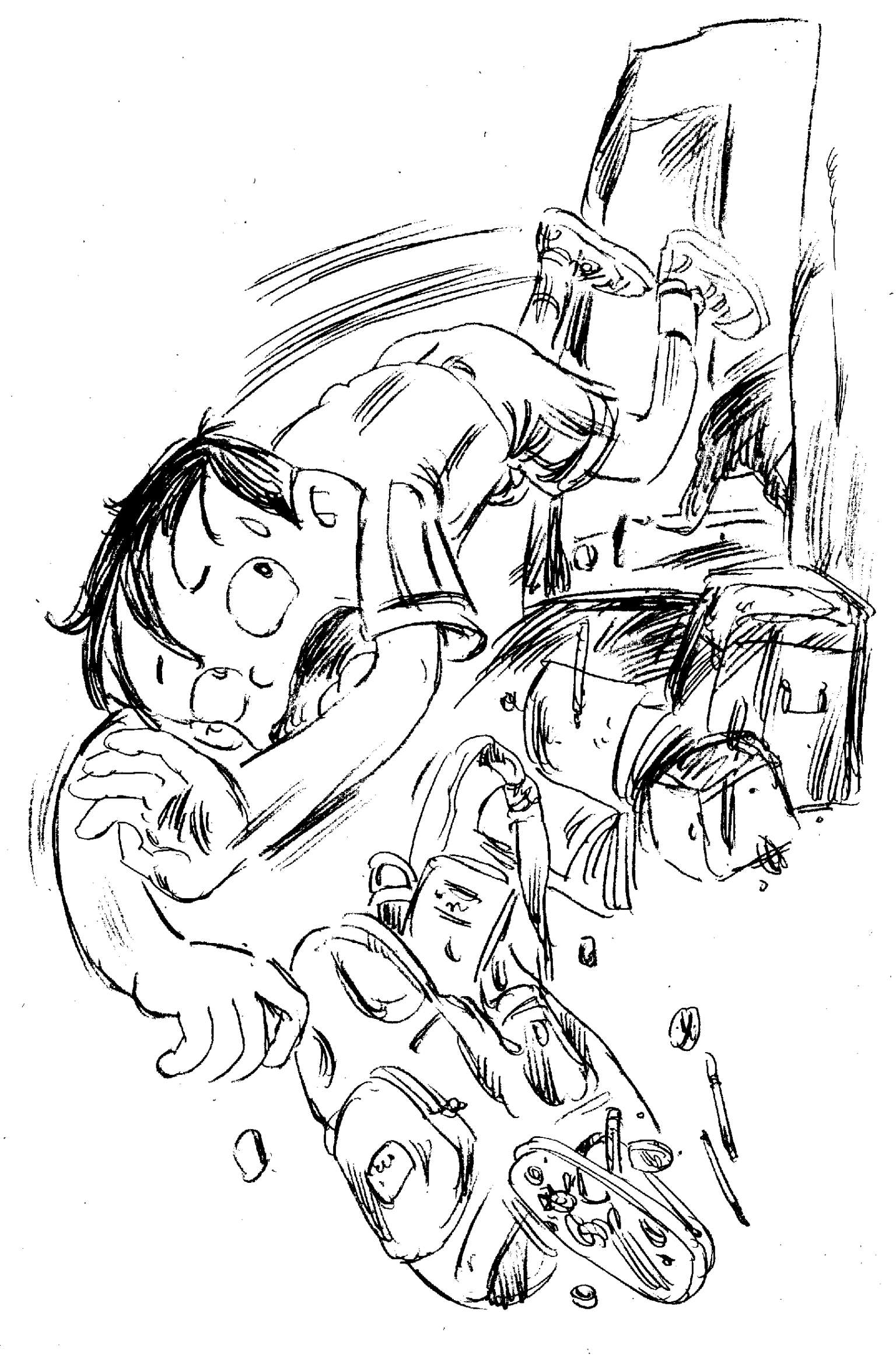 我想去追他们,但是没跑两步,我脚底踩到一个滑溜溜的东西,书包脱手而出,整个人往前摔了出去。