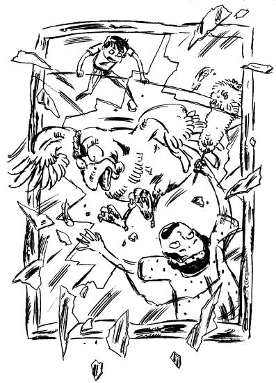 我和妈妈正沉浸在发财的遐想中时,屋子里突然刮起了一阵风。我们转头一看,惊讶地发现,就那么一会儿工夫,芦花小母鸡已经长得像一头小猪那么大!我那本来就不大的房间,对它来说过于狭小了,它感觉很不舒服,就使劲地扇了一下翅膀。于是,房间里平地刮起了一阵大风。所有的东西,全都着了魔似的飞了起来,又乒乒乓乓地掉到地上,许多东西被砸坏了。还有窗户玻璃,被风震碎了,玻璃碴儿落了一地。