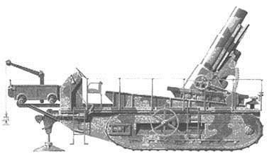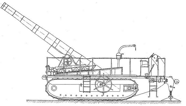 1918年之后,少量280mm(11.02英寸)版本的炮架也不再使用了,它们基本全被改装为使用194mm(7.64英寸)口径火炮的制式化版本。尽管这种原始的履带式自行炮架武器是一个既笨又重的家伙,数量上也微不足道,但它们的确可以在不需要牵引车辆的情况下毫不费劲地成功穿越过各种苛刻难行的地带,而且其火炮本身的射程、弹重和威力也都很理想。所以,在一次世界在战中这是一个相当了不起的成就,具有许多非凡的特征,而这些特征还为日后的许多设计所借鉴:比如,除了复杂的巨型履带式底盘外,这种炮架还可以自动调节反后坐机械装置,以使其与所有可以实现的仰角、液压刹车系统和气动复动机相适应。