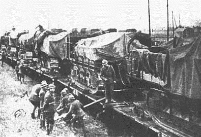 实施铁路运输中的194mm GPF履带式自行式加农炮
