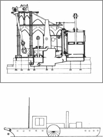 文献资料中的云行丸蒸汽机关断面图及舰体简图