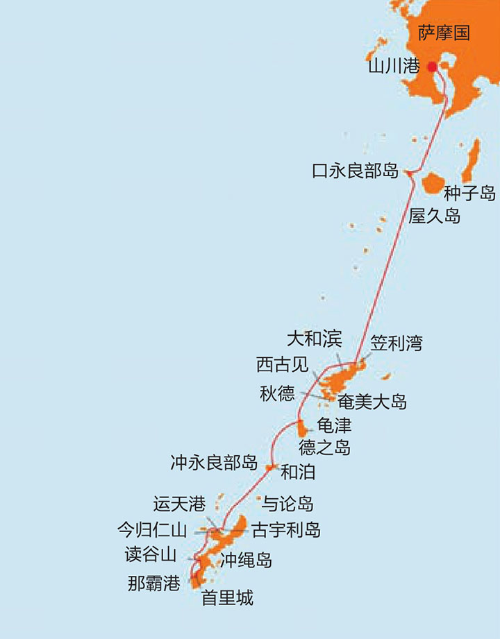 1609年4月,萨摩藩初代藩主岛津家久发动了征伐琉球战役。3000岛津军搭乘数十艘战船,连续十余日发起多次登陆攻势,连克琉球王国的奄美大岛、德之岛、冲永良部岛、今归仁城、那霸港和首里城,击溃总数在本军一倍以上的守军。有史料记载,岛津军装备火绳铳700余挺,火力完全压倒只装备中国式旧火铳的守军,伤亡不过一二百人便结束了战斗。琉球国王尚宁王被俘,随后押往日本签署了屈从萨摩藩的条约。萨摩藩对琉球的统治颇有殖民侵略的意味,不仅强迫奄美群岛的岛民大量种植甘蔗,垄断黑糖贩卖日本内地的利润,还通过琉球口岸与中国明、清政府进行贸易。正是为了保存贸易渠道,萨摩藩允许琉球王国保持与中国的宗藩关系,每当中国使节来到琉球时,萨摩藩人士甚至还主动回避。