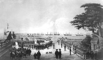 佩里第二次来航如此急切,只因在他上次离开之后,俄国远东舰队司令普提雅廷便率一支舰队来到长崎,要求日本开国通商。幕府以将军德川家齐刚刚去世为由,足足拖延了三个月,直至1854年初川路圣谟一行才赶至长崎,开始与其谈判。双方争论数个回合,无法取得一致意见。如果俄国人就此采取强硬态度,则逼迫日本开国的很可能换成俄国而非美国了。然而就在此时,沙俄与土耳其奥斯曼帝国开战了!英法为对抗俄国派兵至黑海中的兵家必争之地——克里米亚半岛,克里米亚战争就此爆发。得到消息后,普提雅廷只得与日方约定,如果幕府以后允许他国通商,也须给俄国同等待遇,便率舰队离开了。躲得过初一躲不过十五,仅仅一周之后,佩里舰队便抵达江户湾,主动权又幸运地回到了他的手上。
