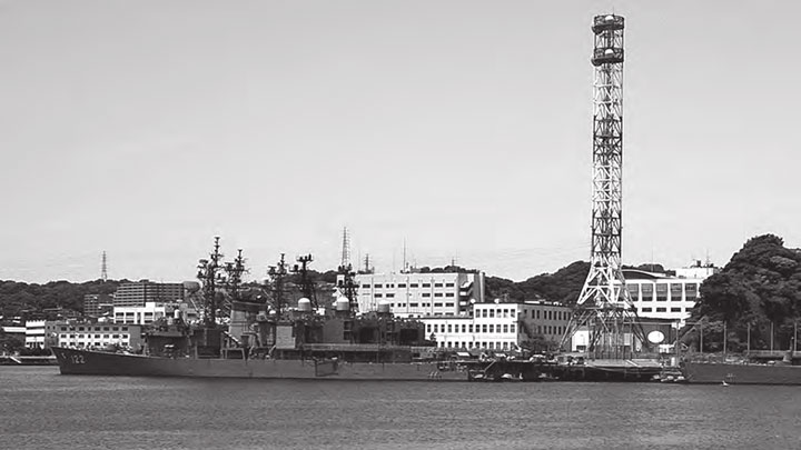 位于横须贺港长浦地区的日本海上自卫队司令部外景,图中3艘驱逐舰分别是初雪号(DD-122)、天雾号(DD-154)和滨雾号(DD-155)。