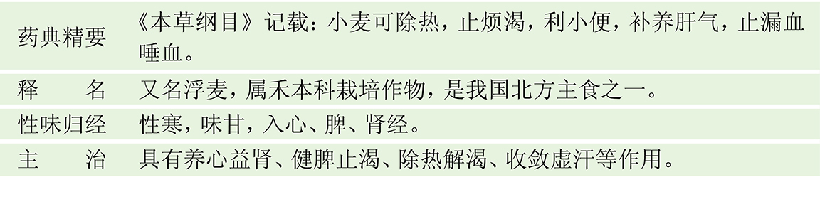 大枣与小麦 可养气血、健脾胃,适用于气血两亏、脾胃不足所致的心慌、气短、失眠。