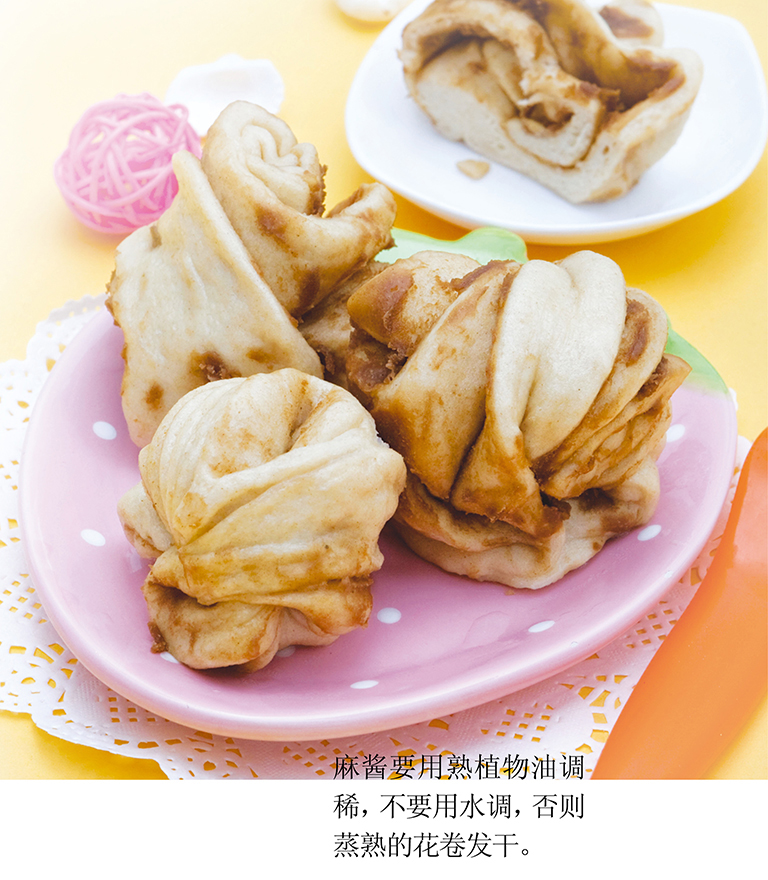 麻酱要用熟植物油调稀,不要用水调,否则蒸熟的花卷发干。