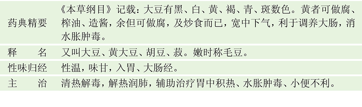4.清热解毒:黄豆150~200克,海带30克。同煮汤,用盐或白糖调味食用。