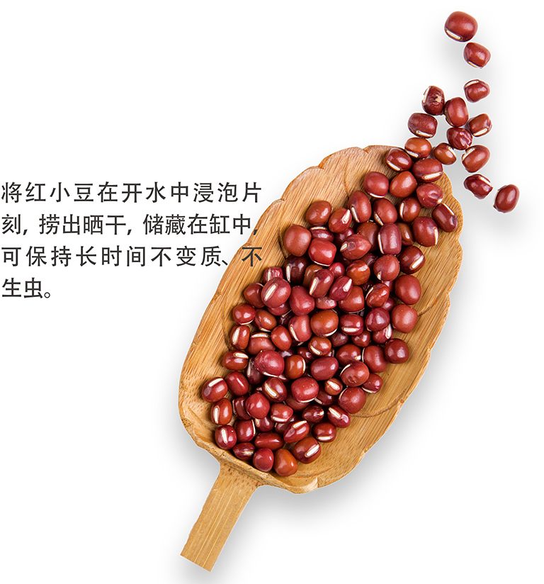 将红小豆在开水中浸泡片刻,捞出晒干,储藏在缸中,可保持长时间不变质、不生虫。