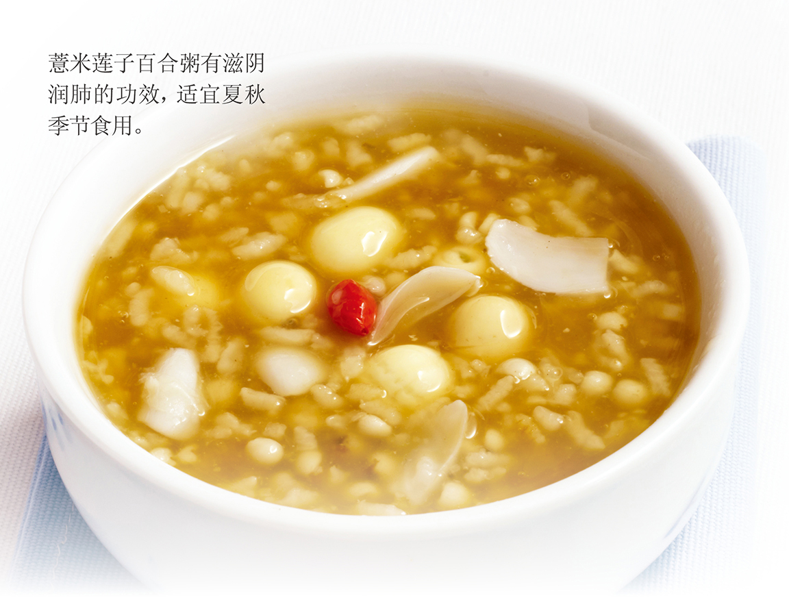 薏米莲子百合粥有滋阴润肺的功效,适宜夏秋季节食用。