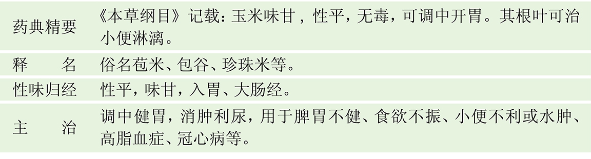3.消肿利尿:玉米粒30克,玉米须15克。加水适量,煎汤代茶饮。