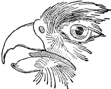 6. The hawk, eagle, and other flesheating birds also have short bills, but not like the sparrow’s. They are much stronger, as they are used for tearing prey to pieces. The upper part is curved like a hook, and is bent down over the lower part.