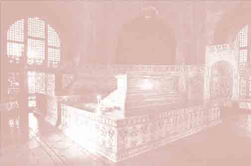 沙贾汗的石棺放置在他妻子的石棺旁,两具石棺皆为白色大理石制作,上面嵌满宝石花卉。
