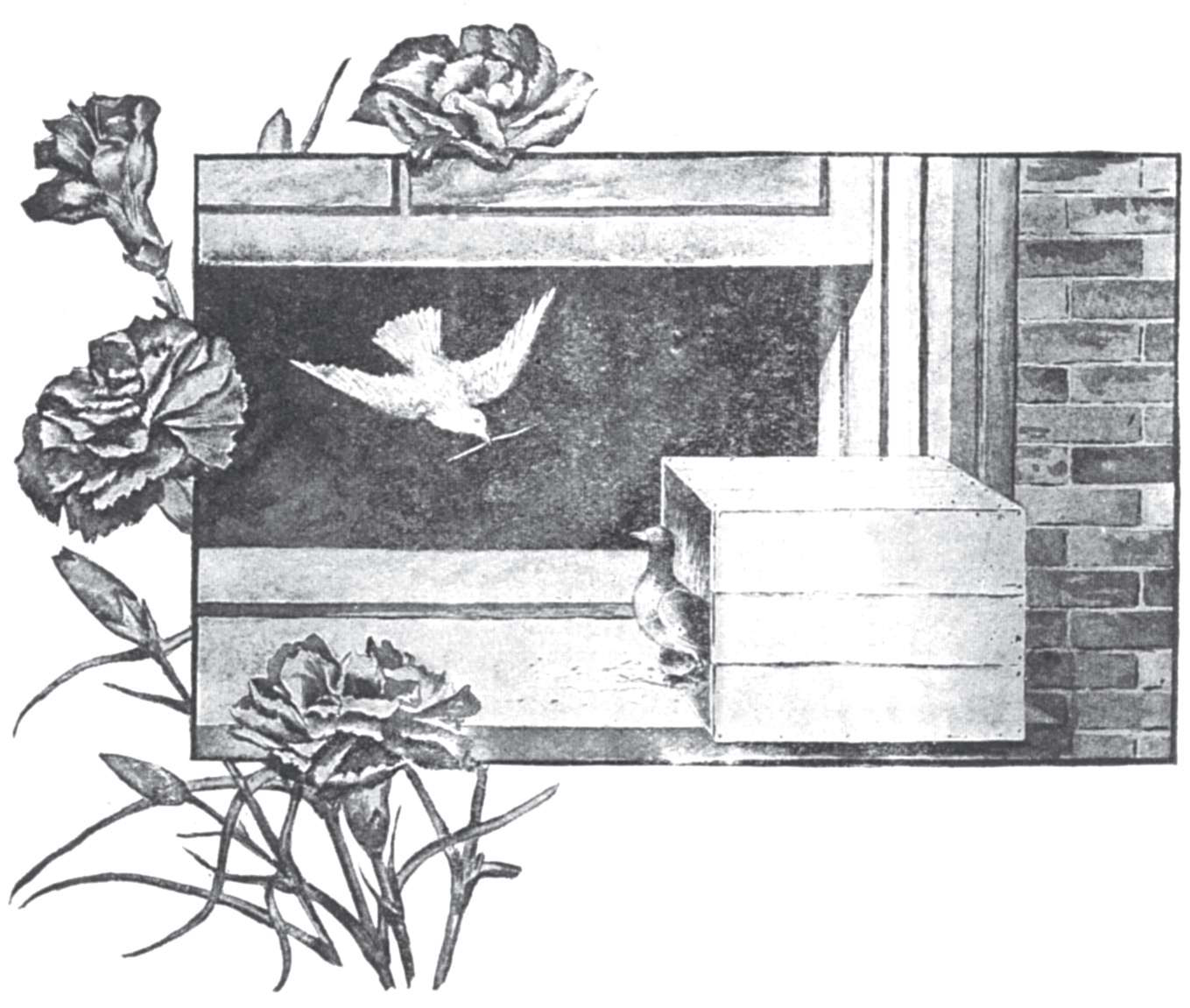 At last I am sure they said to each other, “This seems a fine place for a nest. Just see how the sun shines on this corner! This box suits us very well, too, and the children seem very well behaved!