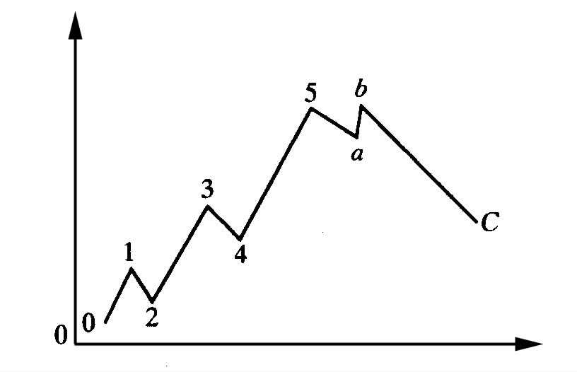 0~1是第一浪,1~2是第二浪,2~3是第三浪,3~4是第四浪,4~5是第五浪。这5浪中,第一、第三和第五浪称为上升浪,而第二和第四浪称为是对第一和第三浪的调整浪。上述5浪完成后,紧接着会出现一个3浪的向下调整,这3浪是:从5到a为a浪,从a到b为b浪,从b到c为c浪。