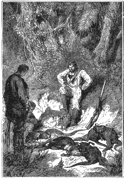 这时,被吓得失魂落魄的巴布亚人已经撤退。我们呢,都半开玩笑地去安慰可怜的内德·兰德,给他按摩,他像个被鬼怪附了体的人似的,一个劲儿地唠叨。